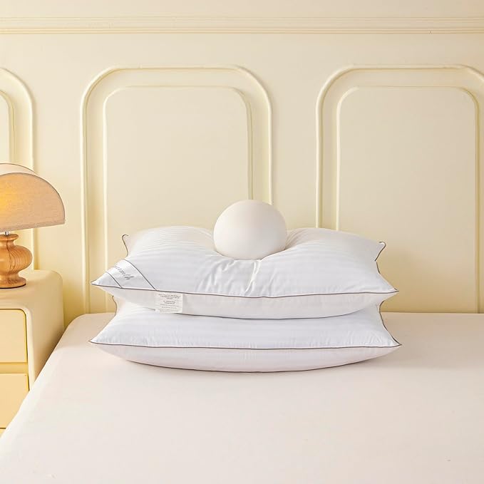 Goose Feather Down Pillow for Sleeping, 100% Cotton Cover King (20X36IN) Bed Pillow Stripe White 1 Pack