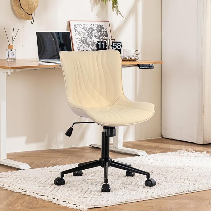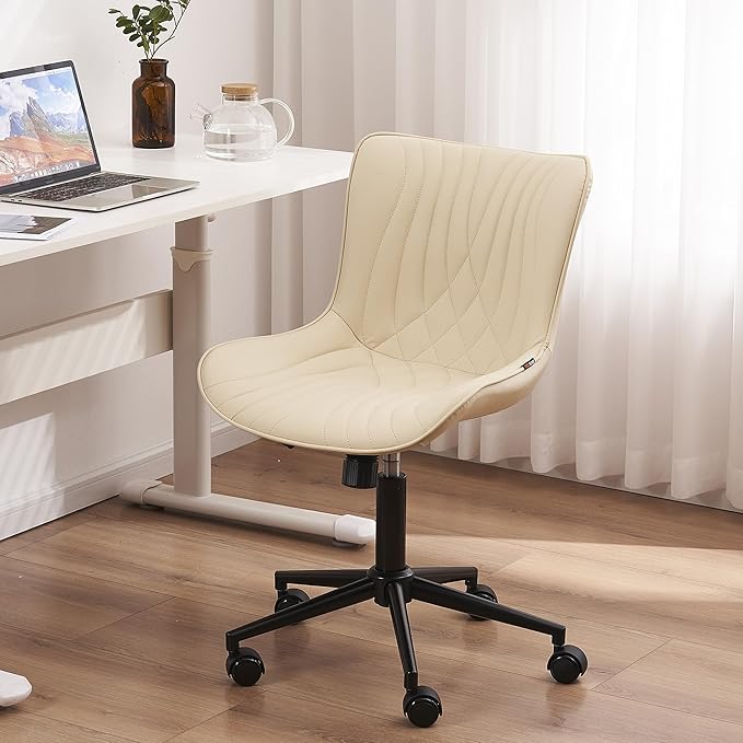 YOUTASTE Office Chair Armless Desk Chair Small Computer Swivel Rolling Chair with Wheels, Modern Upholstered PU Leather Computer Sewing Chair, Adjustable Home Office Desk Chairs, Beige