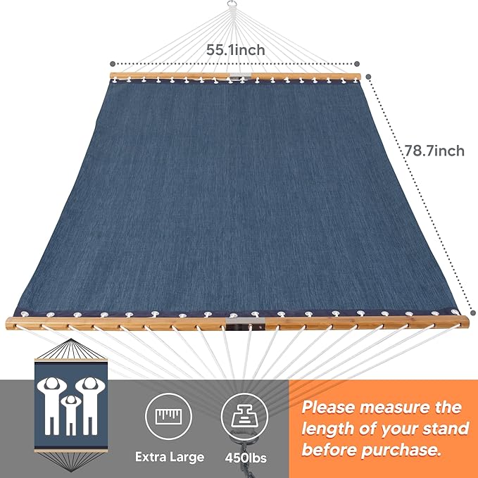 SUNCREAT Hammocks Two Person Tree Hammock, Heavy Duty Hammock for Poolside, Garden, Backyard, Patio, 450lbs Capacity, Navy