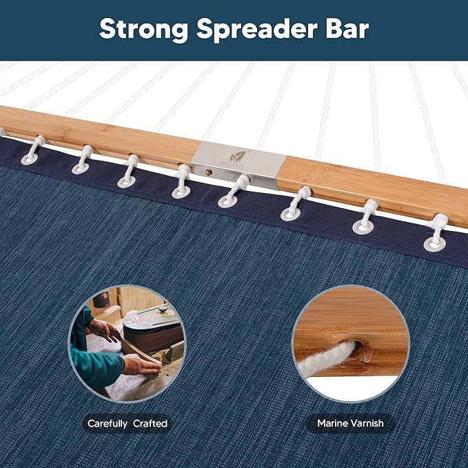 - Strong Spreader Bar: 55 inch spreader bars are stylish and stable, giving you a comfy nap without fearing to flop down. Features countersunk spreader bar holes which reduce the severity of the friction between rope and wood