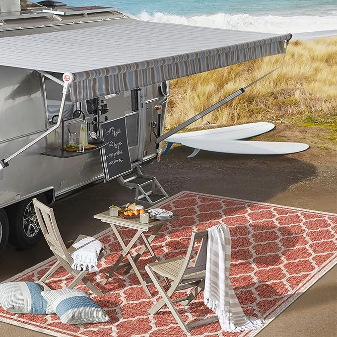 Eyely BMS109C-4 Santa Monica Trebol Moroccan Trellis Textured Weave Indoor/Outdoor Area Rug Coastal;Bohemian, Bedroom, Backyard, Patio, Easy-Cleaning, Non-Shedding, 4 X 6, Red/Beige