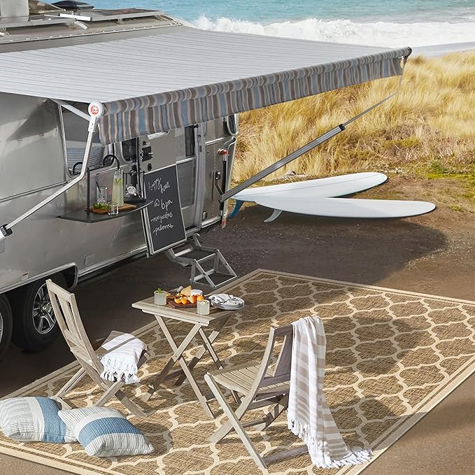 Eyely BMS109A-9 Santa Monica Trebol Moroccan Trellis Textured Weave Indoor/Outdoor Area Rug Coastal;Bohemian, Bedroom, Backyard, Patio, Easy-Cleaning, Non-Shedding, 9 X 12, Brown/Beige