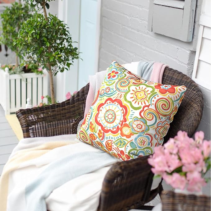 Outdoor Throw Pillow Covers 18”x18”, Decorative Pillow Covers for Patio Furniture, Modern Cushion Cases for Garden Couch Home Sofa Bed Office Chair, Pack of 2, Flower Multi