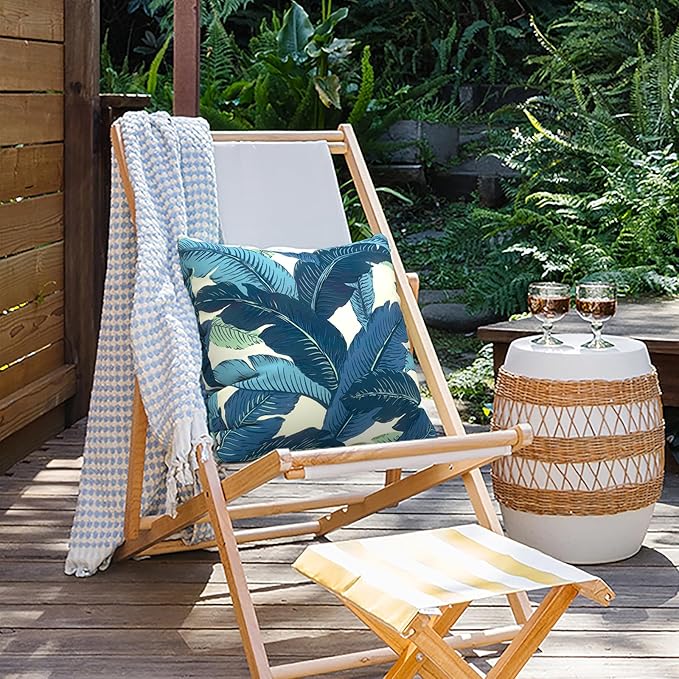 Outdoor Pillows for Patio Furniture 18x18 inch, Square Outdoor Throw Pillows with Inserts, Decorative Toss Pillows for Garden Couch Home Sofa Office Chair, Pack of 2, Swaying Palms Blue