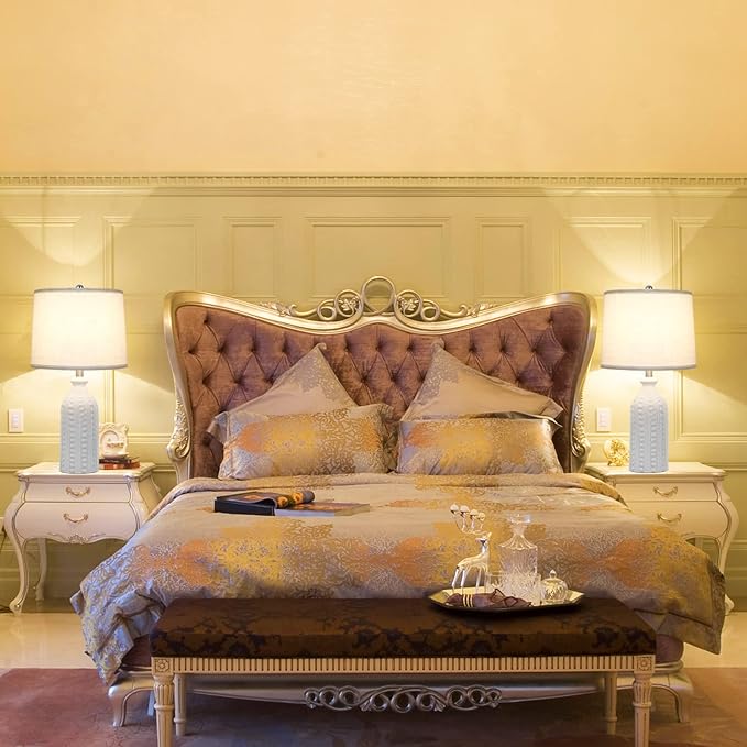 - Stable Ceramic Lamp Base: This white ceramic lamp is 24.5" high overall with a 5.5" wide base, the whole lamp body is thick and stable, not easy to be knocked down. Excellent material and elegant appearance, making these bedside lamps match most home decoration styles, suitable for bedrooms, living room, foyer, dining room, and office