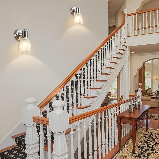 - Lamps Set Upward or Down: The brushed nickel vanity lighting fixtures are generally installed on the top of the head when as mirror lights or porch lamps, which can be installed downward for lighting; If you need to use a lamp when reading or doing other things sitting on a bed or stool, you can install it up in a lower place. due to the simple appearance design of the bath wall light, it can be installed up or down direction as you like, it means that you could fully enjoy the fun of decorating your own house.
