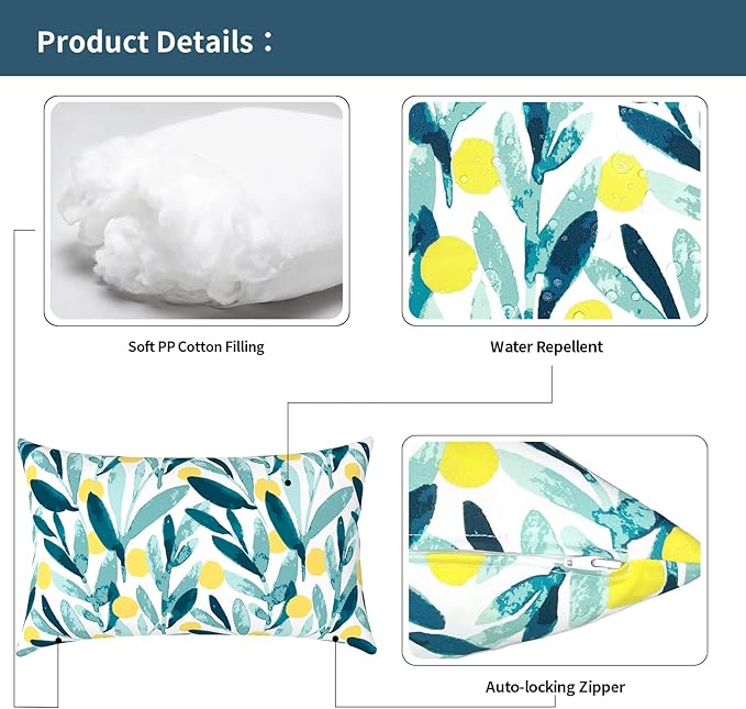 - đŚď¸ăWater/Fade Resistant Fabrică- Decorative lumbar pillows are made from durable polyester fabric, that's water repellent to prevent stains and won't fade even after 1000 hours under direct sunlight. This ensures that your patio lumbar pillows always look neat and tidy season after season, even after extended use.