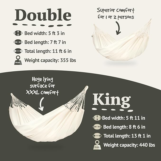 LA Siesta Brisa Classic Hammock with Suspension Kit for Walls, Ceilings, & Square Beams, Handmade, Weather-Resistant, Tear-Resistant Hammock for Indoors & Outdoors, Size-Double - Vanilla