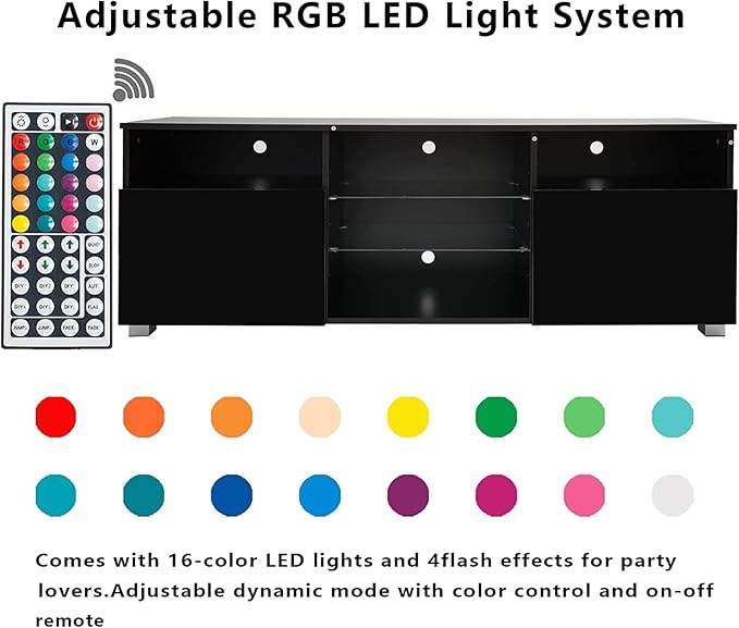 - 【5-Level Height-Adjustable Shelves】The 3 tempered glass shelves can be adjusted with 5 height levels. Gaming TV stand with large storage can be used to store game consoles, media, magazines, DVDs, remote controls and decorative ornaments. Make full use of the space, keep your living room clean and tidy, and prevent you from missing items.