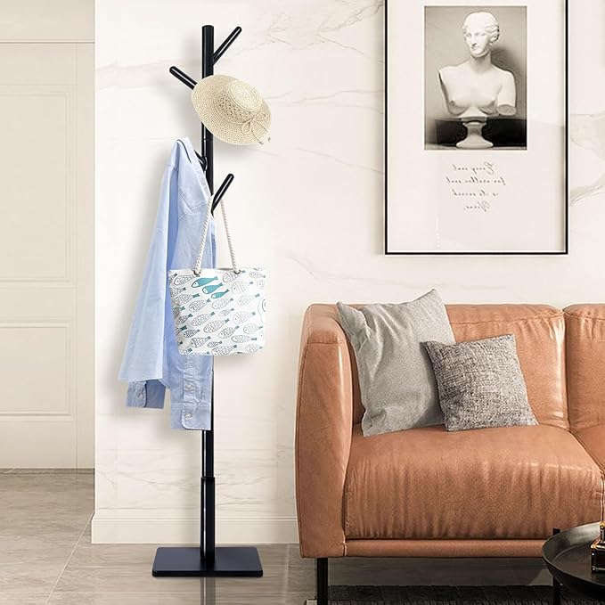 - Multi Functional: The independent hanger is equipped with 8 sturdy hooks, occupying a small area and easy to move. It can be placed in entrances, corridors, living rooms, bedrooms, offices. You can use it to hang clothes, hats, coats, bags, scarves, umbrellas