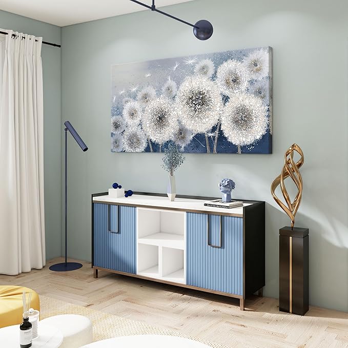 Pogusmavi Blue Wall Art for Living Room Dandelion Large Canvas Wall Art Paintings Wall Decor Wall Pictures for Bedroom Landscape Artwork Textured Wall Art 29x58IN
