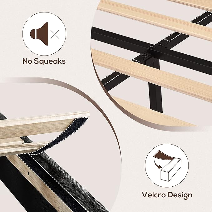 - No Box Spring Needed: Designed with Velcro wooden slats for fast assembly; mattress does not slide; suitable for memory foam or spring mattresses without the need for a box spring