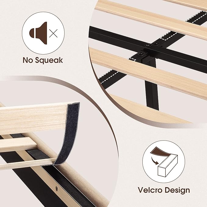 - No Box Spring Needed: Designed with Velcro wooden slats for fast assembly; mattress does not slide; suitable for memory foam or spring mattresses without the need for a box spring