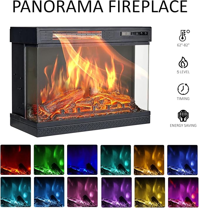 - 3-Side Glass Display - Panorama fireplace allows you to enjoy 12 realistic flame colors and 5 levels of dimmer atmosphere from any seat in the room. Even on the sides, the glass surface allows you to admire the generous 4.3" wood log.