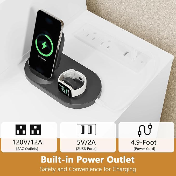 - Built-in Charging Station: Having the plugs in the front makes life so much easier! This vanity table add 2 standard plug sockets and 2 USB ports, more convenient for curling iron, beauty device, hair dryer and phone charging. Nice make up vanity for dressing room, salon or live broadcast