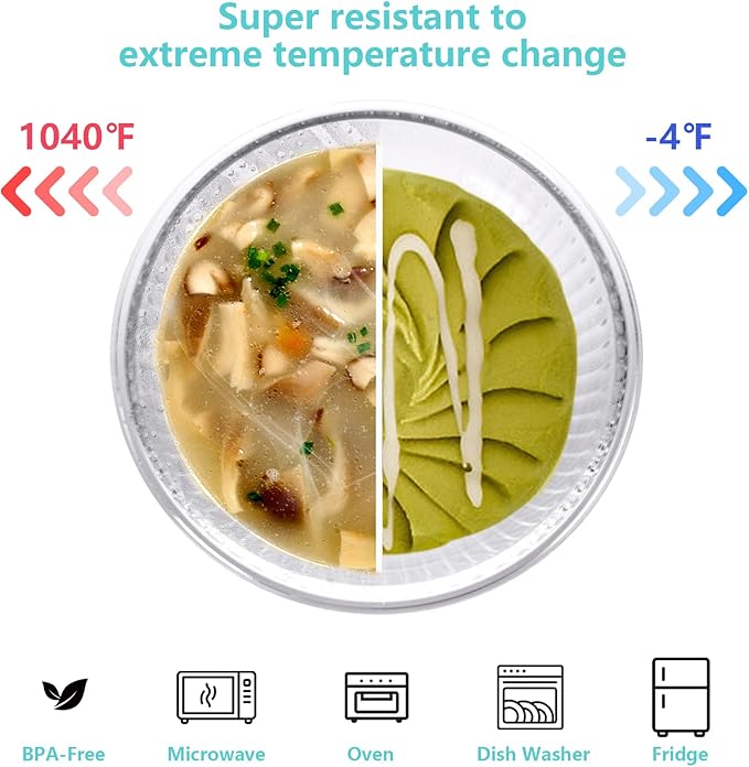 - 【Stain and Odor Resistant 】: The glass is on-porous,and each bowl is equiped with an airtight lid,so it won't discolor and retain smells.