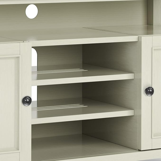 SIMPLIHOME Amherst 54-inch Wide Solid Wood TV Stand in Antique White, Transitional-Style Media Console for Living Room with Adjustable Shelves and Cable Management