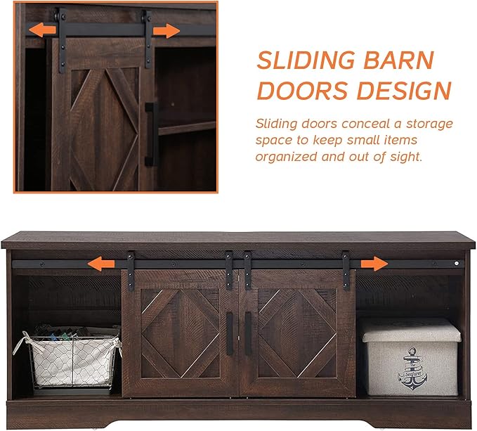 WAMPAT Modern Farmhouse 3 in 1 TV Stand for up to 85" TVs Wood Entertainment Center with Sliding Barn Door and Adjustable Media Storage Shelf for Living Room,Rustic Brown