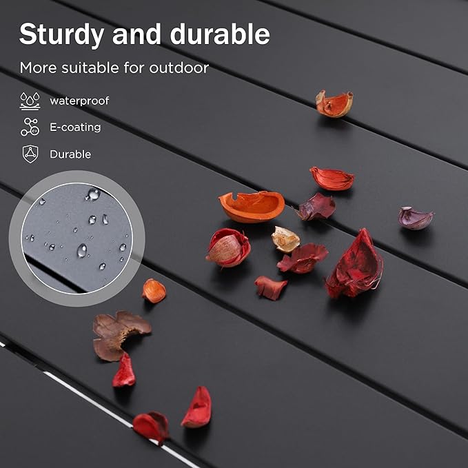 - 1 TABLE: Metal steel frame longevity with e-coating needs no special maintenance, rust and weather resistant. Pre-cut umbrella hole: 1.9", fits most umbrella without shaking,Dimensions:58.9"W x 35.4"D x 28.10"H.