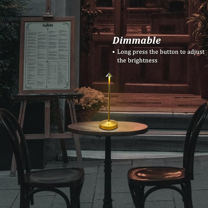 - Touch Switch & Brightness Dimming: The cordless table lamps includes a dimmable 3W LED light; Color temp:3000 kelvin; The led table lamp with two-levels of brightness can create the right atmosphere at any time - even as a bedside lamp and reading lamp by tapping the button on the table lamp to adjust the brightness; To dim the table lamp, simply applying light pressure on the touch button until the desired brightness is reached