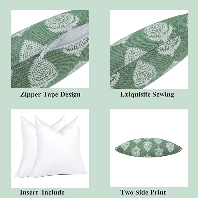 FUNHOME Outdoor Indoor Throw Pillows 18”x18”, Set of 2 Decorative Throw Pillows with Inserts, All Weather Water-Repellent Square Pillows for Bed, Couch, Sofa and Patio Furniture -Fair Green