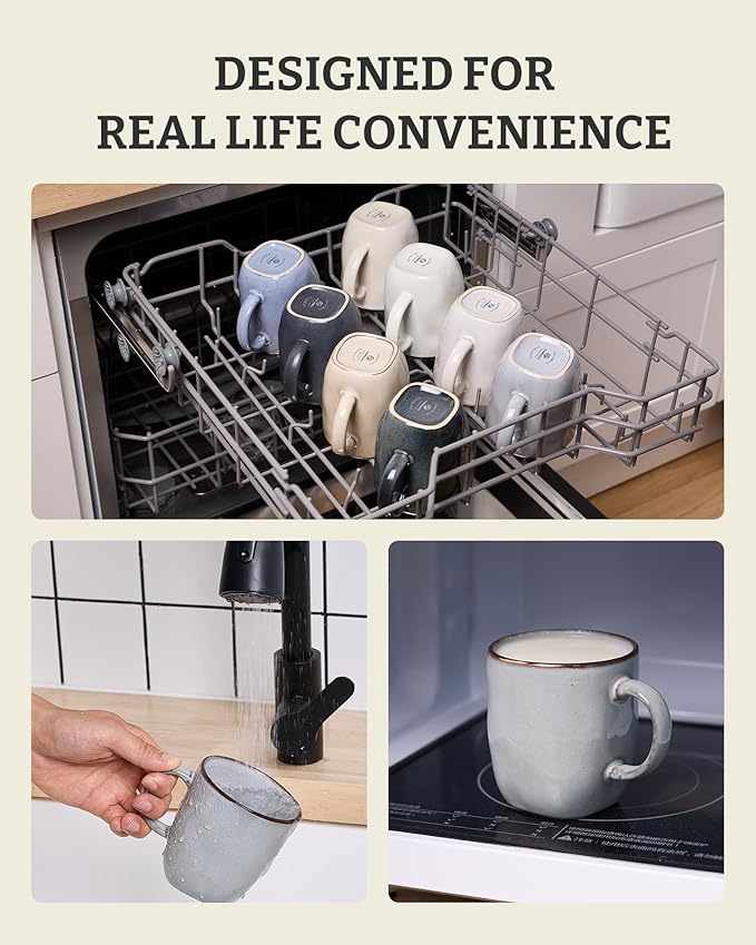 - 【Dishwasher and Microwave Safe】 Famiware Stoneware coffee cups for the kitchen are made of premium stoneware. Each plate and bowl is dishwasher and microwave safe.