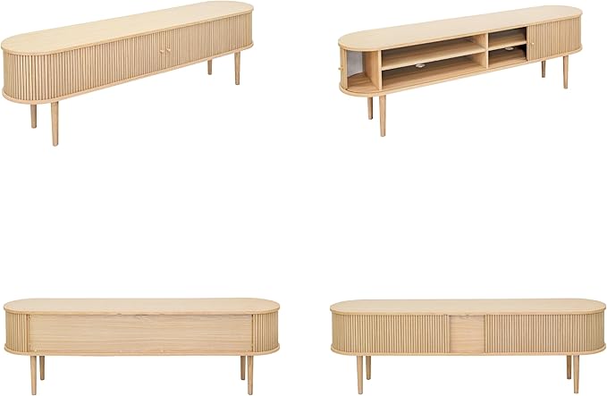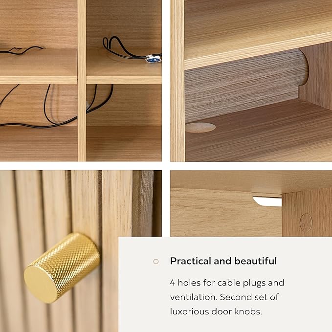 - BRING CHARACTER TO YOUR HOME by using an oak modern tv stand which curvy corners and smoothly sliding tambour doors makes it a perfect accent cabinet. Aesthetic appeal makes it suitable for both living room tv stand and bedroom tv table. You will receive 2 sets of door knobs - wood & messing.