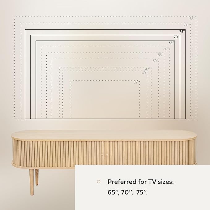 - HAVE A COMFORTABLE VIEWING EXPERIENCE as the console cabinet is suitable for TV sizes 65'' - 75'' and its height offers optimal viewing as the TV screen will be roughly at eye level when seated. Air circulation is guaranteed by the necessary openings for cables in the back wall and the bottom of the TV cabinet.