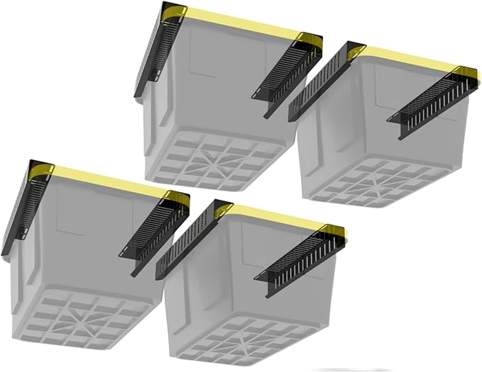 Overhead Bin Rack - Ceiling Mount Overhead Garage Storage Rack | Adjustable Width and Orientation | Heavy Duty Ceiling Bin Storage Rails | Fits Black & Yellow Storage Bins | USA Designed (4 Bins)