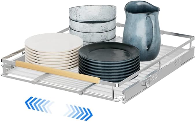 - Sliding Design: This cabinet organizer is manufactured with a ball bearing system, the slide-out will be smooth. And add the ability to adjust the width, you can expandabel the shelf to fit your cabinet. It can better utilize and save more cabinet space than ordinary pull-out cabinet organizers.