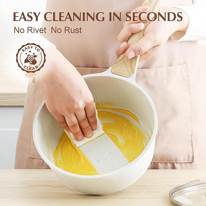 - Safe & Healthy - SENSARTE natural ceramic nonstick saucepan is free of intentionally added PFAS, PFOA, lead, and cadmium. Safe cooking for your family and healthier diet with less oil.