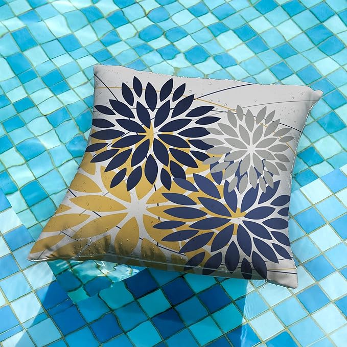DFXSZ Outdoor Throw Pillow Covers 18x18 Inch Set of 2 Waterproof Spring Summer Geometric Elegant Yellow Blue Outdoor Pillow Covers for Patio Funiture Garden Couch 158R18