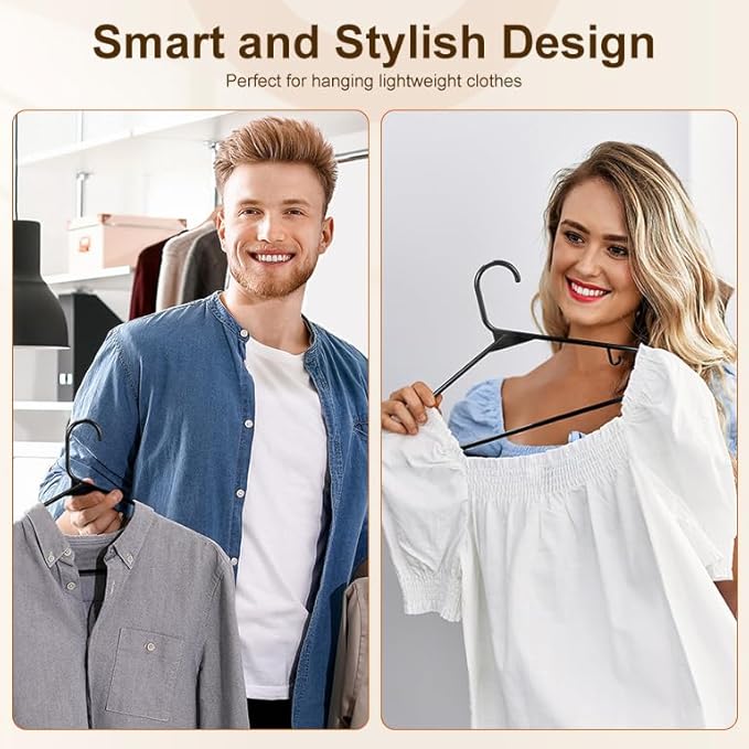- Closet Organizers and Storage: Keep your closet neat and tidy with these plastic clothes hangers 50 pack! These black plastic hangers allow you to arrange your garments in a systematic and efficient manner, ensuring that finding and retrieving your desired clothes is a breeze. Additionally, the elegant design of the closet hangers also enhance the visual appeal of your storage space.