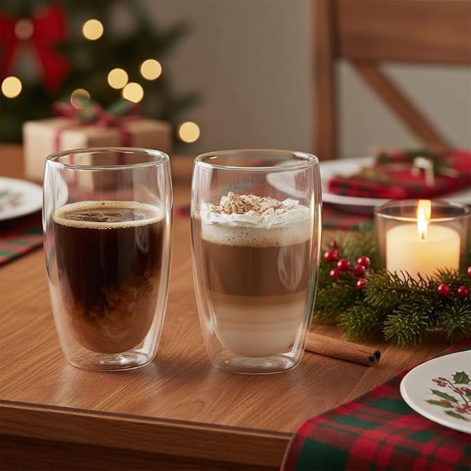 - Double Wall Glass Cup: The 15oz double-layer glass design has a smooth surface. Whether you prefer hot or cold drinks, trust LYTDMSKY's 2pcs insulated coffee mug set to keep your drinks at the ideal temperature and ensure your pleasant drinking experience