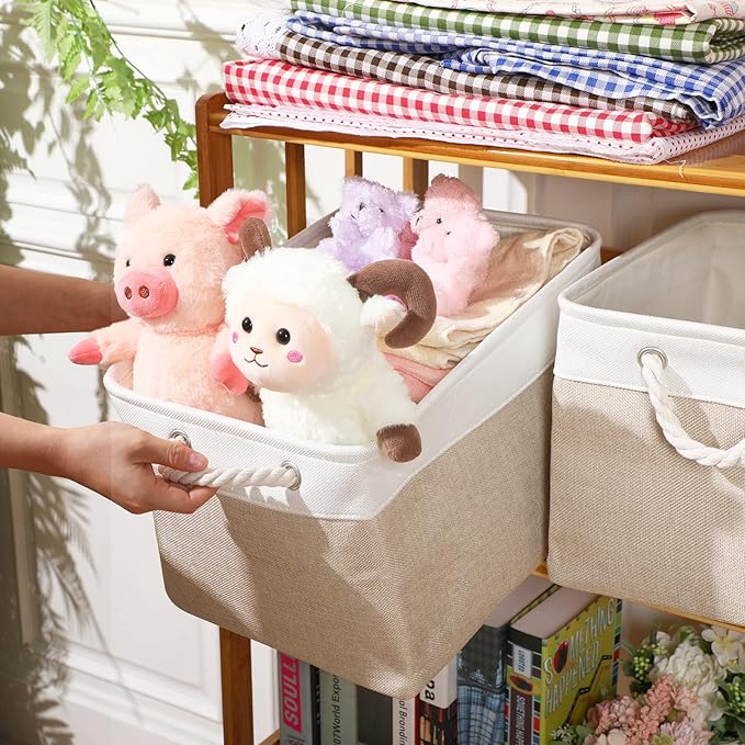 - Trustworthy Material: this rectangle storage basket is mainly made of linen fabric and polyester, which can let you feel soft and comfortable; The inner lining of the basket is made of polyester material, which is convenient for us to clean; Meanwhile, the handle design is convenient for us to grab and carry, not easy to hurt hands; Warm tips: the product is handmade, there may be odor, you can open the package and leave it for a while, the smell will be eliminated