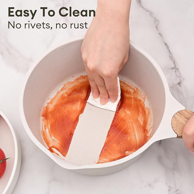- [Easy To Clean] : With the non-stick coating, this milk pot can help you solve sticky or difficult-to-clean problems. Only using a soft sponge or dishcloth, you can clear dish stain easily. (Please do not use sharp or pointy brush, which would do harm to the non-stick layer.)