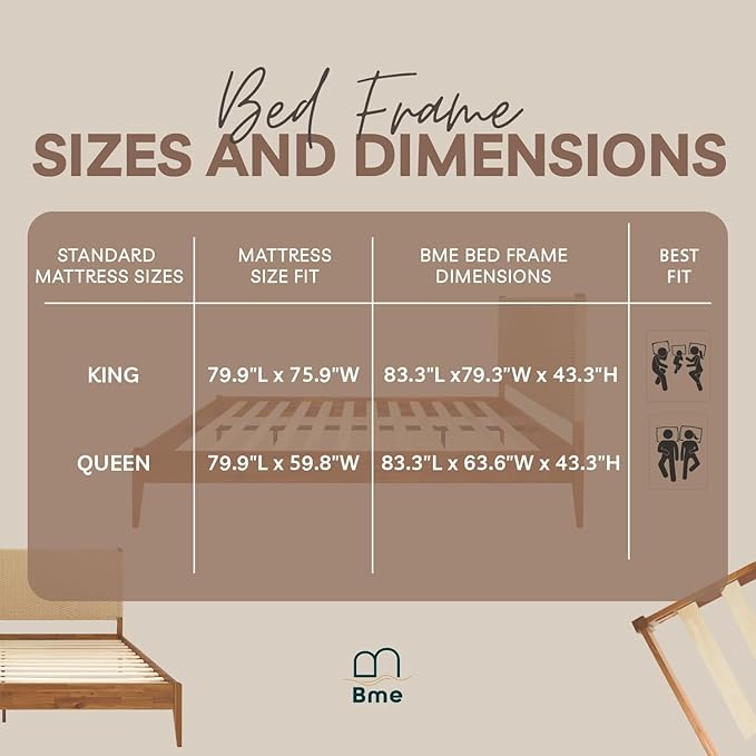 - BUILT TO LAST MATERIALS: Our exquisite king bed frame and headboard is crafted from durable solid acacia wood with a special woven headboard design; With its sturdy construction and noiseless design, you can glide effortlessly into your dreamland