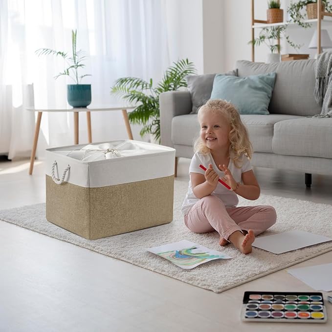 TheWarmHome Organization Basket - 20x16x14 inch Jumbo 3 Pack Collapsible Storage Bins for Shelves, Fabric Storage Cubes for Closet Organizer Gift Toy (White & Khaki)