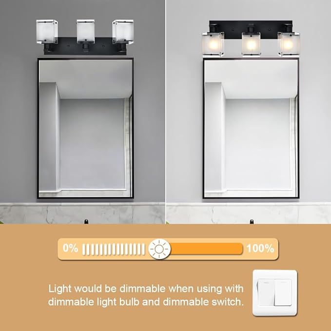 - 1 - [OUTSTANDING DESIGN] - This vanity lighting fixture is designed with sturdy metal base in matte black finish, matching with rectangular frosted glass lampshade, providing you soft light instead of a harsh glare.