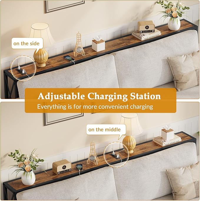 - 70" Sofa Table With Charging Station: We know what you want, the sofa table is equipped with 2 outlets, 2 USB ports and 78-inch power cord. In addition, you can place the power strip where you like by adjusting the tabletop section. Let your mobile phone, laptop, lamp and other electronic devices charge in an orderly manner