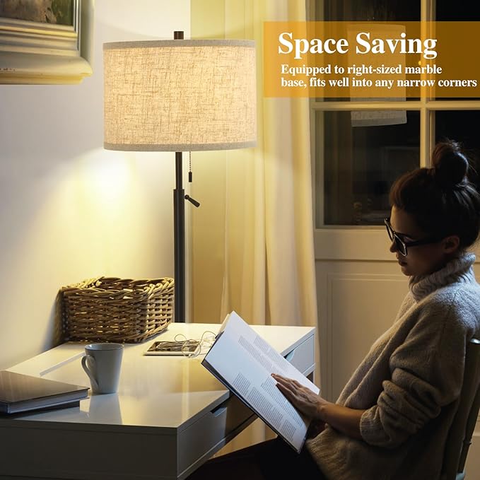 - 【Modern Design & Caring For Eyes】 This floor lamp for living room is constructed of fabric round lampshade and marble base that provides a cozy feeling. It is a great adornment which can be integrated well with any decoration style. The fabric lampshade will soften the luminance, making it bright enough but not harsh.
