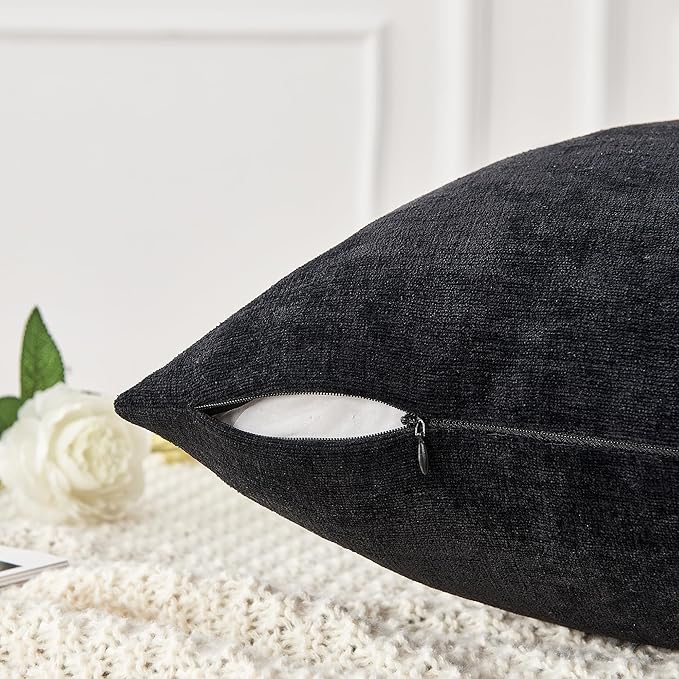 GAWAMAY Decorative Square Throw Pillow Covers 22"x22" Inch Set of 2, Super Soft Chenille Pillows Farmhouse Fall Pillowcase for Living Room Bedroom Sofa Couch Cushion Cover Black 55x55cm (No Insert)
