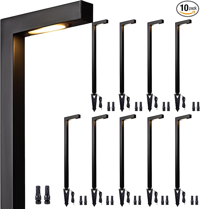 - Wide Applications: The side lit L-shaped hardwired pathway light has a unique appearance that matches well with modern-style houses. The brass top prevents puddling and downward lighting prevents glare. The frosted lens of the outdoor path lighting softens the light for a comfortable exterior path lighting experience, perfect for your garden, driveways, pathway, walkways, sidewalk, front yard, front patio, lawn, or backyard