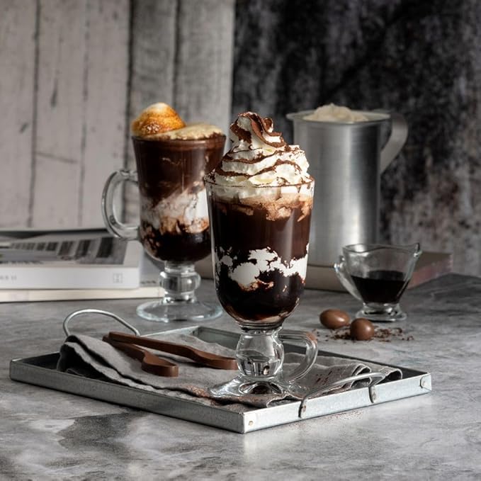 - ☕ Elegant Footed Design: Each mug features a beautifully crafted footed base combined with a sturdy handle, offering style and stability for every occasion. Perfect for serving Irish Coffee, Hot Toddy, or even specialty teas, the raised base keeps surfaces cool while adding a touch of elegance to your table.