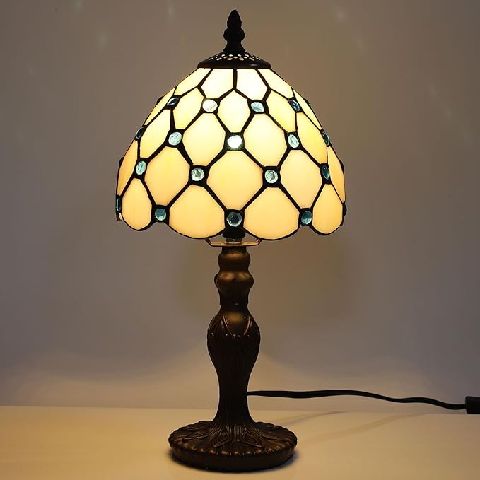 Tiffany Small Table Lamp for Living Room Blue Beads Stained Glass Bedside Nightstand Table Lamps for Bedroom Set of 2,3-Color Temperatures 8X8X15 Inch Hotel Home Office Desk Lamps