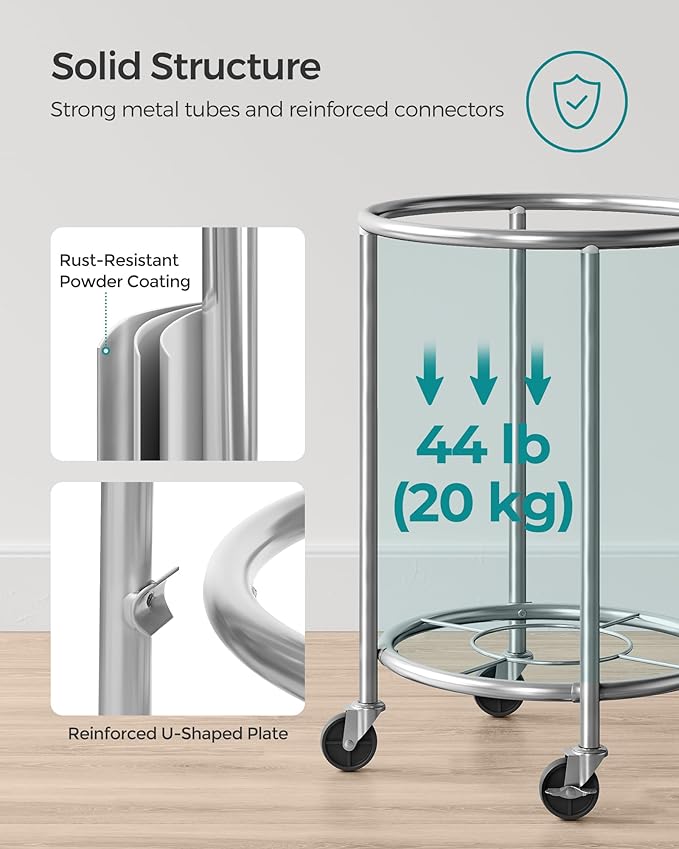 - Stable and Durable: With sturdy steel tubes and reinforced U-shaped plates, this laundry organizer boasts a solid structure that can support up to 44 lb. The powder coating makes the tubes rust-resistant for greater durability