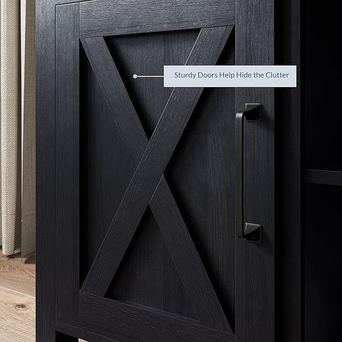 - [CLASSIC FARMHOUSE DESIGN] Rustic-style vibes bring a natural touch into any room and bring out your interior design's emphasized wood materials. Barn-style cabinet doors with plank-like accents are reminiscent of a charming farm countryside. This media entertainment center looks great when used as a TV stand in a living room or bedroom.