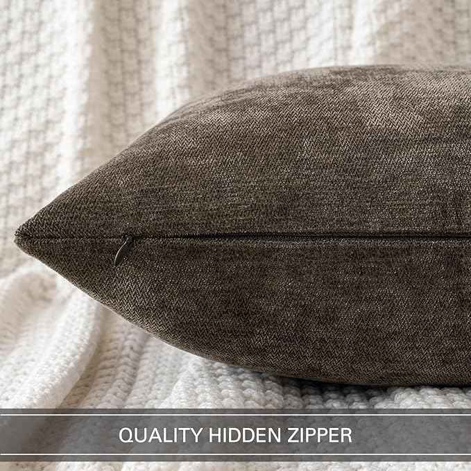 MIULEE Pack of 2 Brown Decorative Pillow Covers 20X20 Inch Soft Chenille Couch Throw Pillows Farmhouse Cushion Covers for Home Decor Sofa Bedroom Living Room