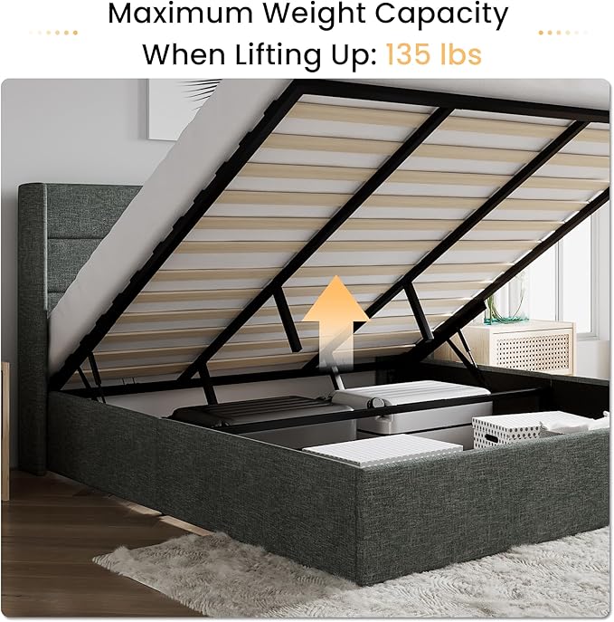 - Special Feature : Lift Up Storage, Squeak Resistant, Wingback Headboard