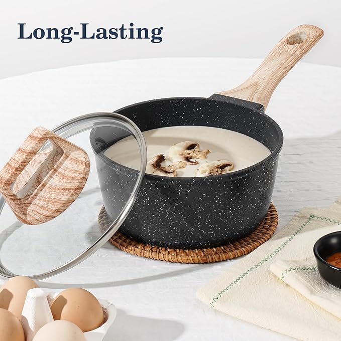 - Safe, Non-Toxic Cookware You Can Trust - Designed for healthier, worry-free cooking. Crafted with a durable granite non-stick coating free from harmful chemicals like PFOS, PFOA, lead, and cadmium, this pots and pans set ensures your meals are as clean and wholesome as the ingredients you use.